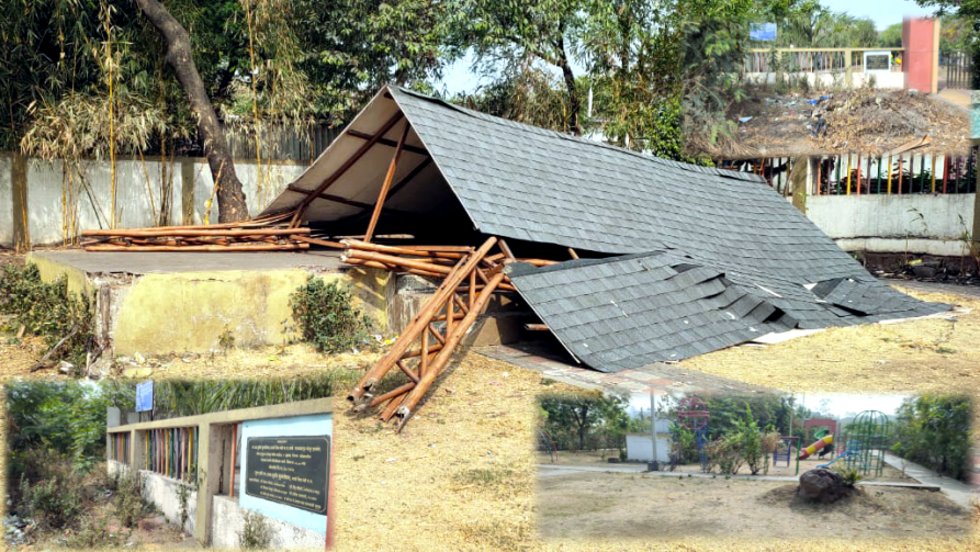 घुग्घुस : पिछले तीन से चार साल में शहर के कई वार्डों में कई गार्डन बनाए गए हैं. जो सुंदर और आकर्षण के गार्डन है. इन में से एक गार्डेन में बीते रात को तिलक नगर में गार्डेन का बांस और लोहे से बना एक शेड ताश के पत्ते की तरह धराशायी हो गया, इसे किस्मत कहें, बच्चे वहां नहीं खेल रहे थे और सीनियर सिटीजन वहां बैठे हुए नही थे. जिससे एक बड़ी जानहानि होने से बच गई.