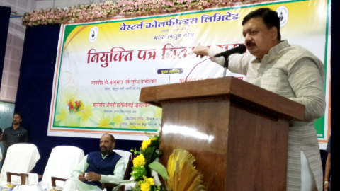 सांसद बालू धानोरकर ने (3.5.23) बल्लारपुर मनोरंजन केंद्र वेकोली में 75 परियोजना हितग्राहियों को नौकरी के पत्र दिए. वह उस समय बात कर रहे थे.