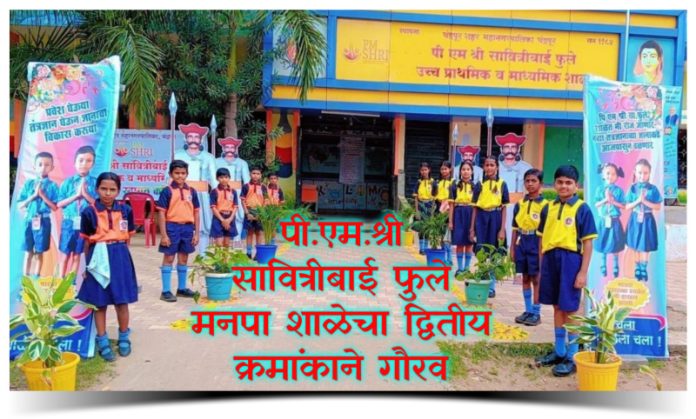 चंद्रपूर : भारतरत्न डॅा. बाबासाहेब आंबेडकर आदर्श शाळा योजनेअंतर्गत मुख्यमंत्री माझी शाळा सुंदर शाळा अभियान स्पर्धेत पी एम श्री सावित्रीबाई फुले मनपा शाळेस तालुक्यातुन द्वितीय क्रमांकाचे बक्षीस याअंतर्गत २ लक्ष रुपयांचा धनादेश शाळेस प्राप्त होणार आहे.