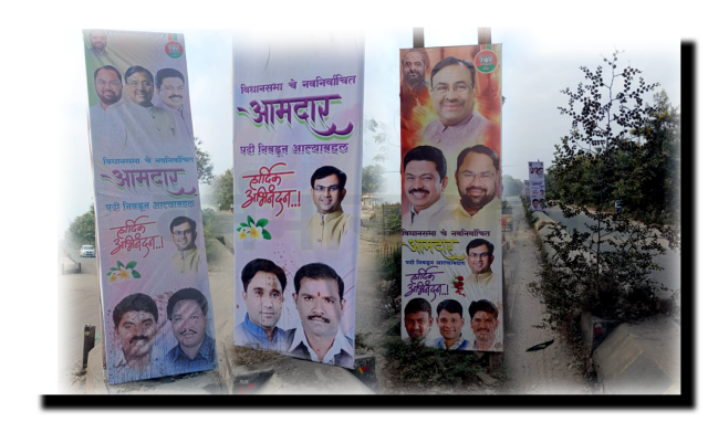 चंद्रपुर : घुग्घुस नगर परिषद के अंतर्गत बैनर, पोस्टर और होर्डिंग का जलवा है. एक बार लगाओ महीना तक चलाओ ऐसी प्रथा शहर में चल रहा है. क्योंकि आधिकारिक तौर पर प्रचार प्रसार तो घुग्घुस नगर परिषद की ओर से जोर-शोर से अवैध बैनर को लेकर किया जाता है. परंतु, यह केवल कागजों तक ही सीमित नजर आ रहा है ऐसा कहना भी कोई गलत बात नहीं है. वास्तविक स्थिति बिल्कुल इसके विपरीत नजर आती है.