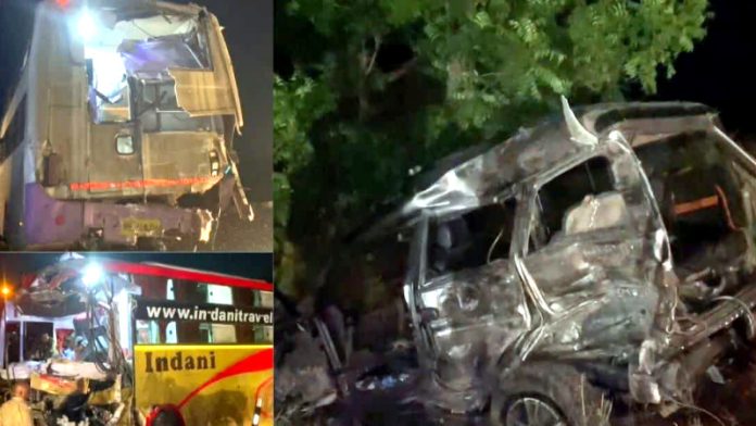 बुलढाणा : बुलढाणा जिल्ह्यातील खामगाव शहरालगतच्या शेगाव मार्गावर पहाटे एक भीषण अपघात झाला. या अपघातात ६ जणांचा जागीच मृत्यू झाला असून २६ जण जखमी झाले आहेत.