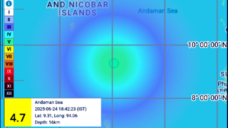 अंडमान सागर में आया 4.7 तीव्रता का भूकंप