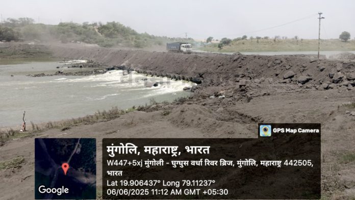 चंद्रपुर : 6 जून 2025 के दिन वेस्टर्न कोलफील्ड लिमिटेड (WCL) द्वारा वर्धा नदी पर बनाए गए राफ्टर ब्रिज के कारण नदी का प्राकृतिक प्रवाह पूरी तरह से अवरुद्ध हो गया है, जिससे आगामी मानसून में बाढ़ की स्थिति और संभावित जानमाल की हानि की आशंका जताई जा रही है। इस गंभीर मुद्दे पर घुग्घुस ग्राम पंचायत के पूर्व उपसरपंच सुधाकर गणपत बांदुरकर ने जिलाधिकारी को एक लिखित निवेदन सौंपते हुए तत्काल कार्रवाई की मांग की है।