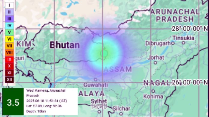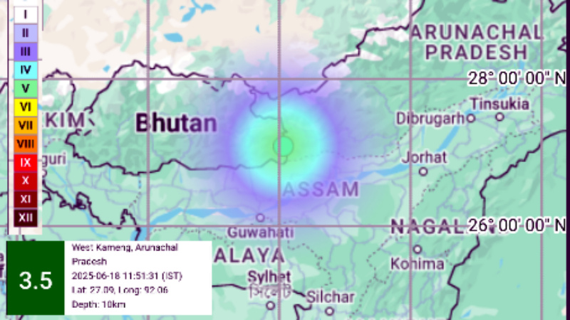 पश्चिम कामेंग, अरुणाचल प्रदेश – आज दिनांक 18 जून 2025 को सुबह 11:51 बजे अरुणाचल प्रदेश के पश्चिम कामेंग जिले में भूकंप के झटके महसूस किए गए। भारतीय समयानुसार (IST) आए इस भूकंप की तीव्रता रिक्टर स्केल पर 3.5 मापी गई।
