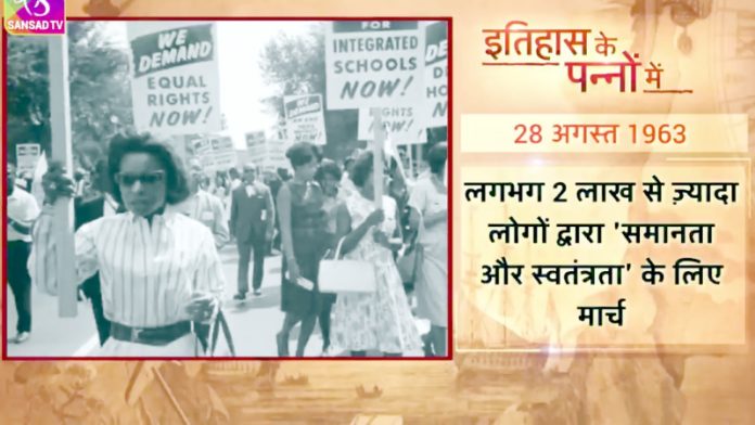 आज ही के दिन अमेरिकी इतिहास की एक ऐतिहासिक घटना घटी थी। 28 अगस्त 1963 को वॉशिंगटन डी.सी. के लिंकन मेमोरियल पर 2 लाख से अधिक लोग समानता और स्वतंत्रता की मांग के लिए एकत्र हुए थे। यह प्रदर्शन अमेरिका के नागरिक अधिकार आंदोलन का सबसे बड़ा और ऐतिहासिक हिस्सा माना जाता है।