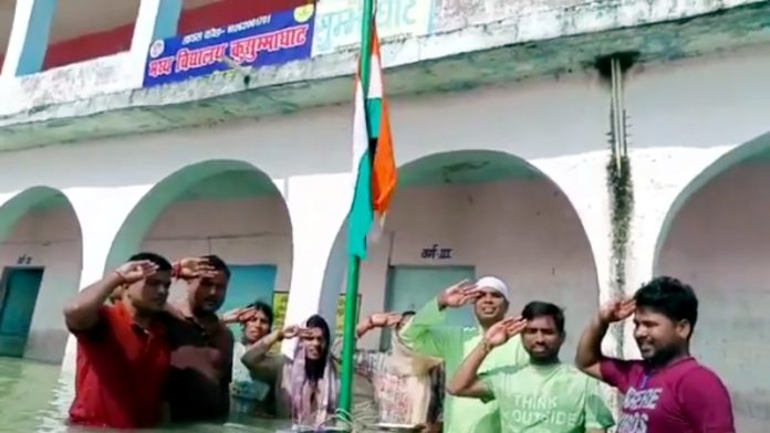 शिक्षकों ने कहा कि बाढ़ की मार देशभक्ति की भावना को कभी कमजोर नहीं कर सकती। हर हाल में तिरंगा फहराना और देश के प्रति सम्मान प्रकट करना उनका कर्तव्य है।