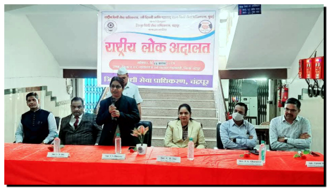 चंद्रपूर : राष्ट्रीय विधी सेवा प्राधिकरण, नवी दिल्ली आणि महाराष्ट्र राज्य विधी सेवा प्राधिकरण, मुंबई यांच्या निर्देशानुसार आज दि. १३ सप्टेंबर रोजी चंद्रपूर जिल्हा न्यायालयासह सर्व तालुक्यातील न्यायालयांमध्ये राष्ट्रीय लोकअदालतीचे आयोजन करण्यात आले.