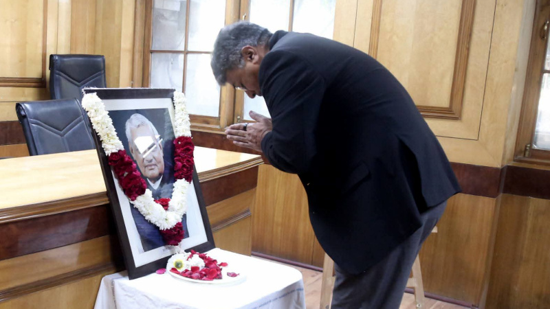 नवी दिल्ली : सुशासन, विकास आणि राष्ट्रीय एकतेचे प्रतीक असलेले भारतरत्न माजी पंतप्रधान अटल बिहारी वाजपेयी यांच्या 101 व्या जयंतीनिमित्त निवासी आयुक्त तथा सचिव आर विमला यांनी जुने महाराष्ट्र सदन येथे त्यांच्या प्रतिमेस पुष्पांजली वाहून अभिवादन केले.