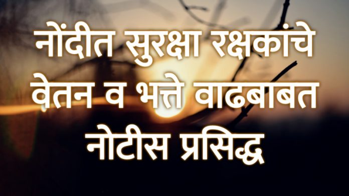नोंदीत सुरक्षा रक्षकांचे वेतन व भत्ते वाढबाबत नोटीस प्रसिद्ध