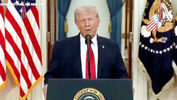 अपने संबोधन में ट्रम्प ने यह भी चेतावनी दी कि ईरान परमाणु बम हासिल करने की दहलीज पर पहुंच चुका था। उन्होंने कहा कि वर्षों से यह कहा जाता रहा है कि ईरान को परमाणु हथियार नहीं मिलना चाहिए, लेकिन यदि समय आने पर कार्रवाई नहीं की जाए, तो ऐसे बयान केवल शब्द बनकर रह जाते हैं।
